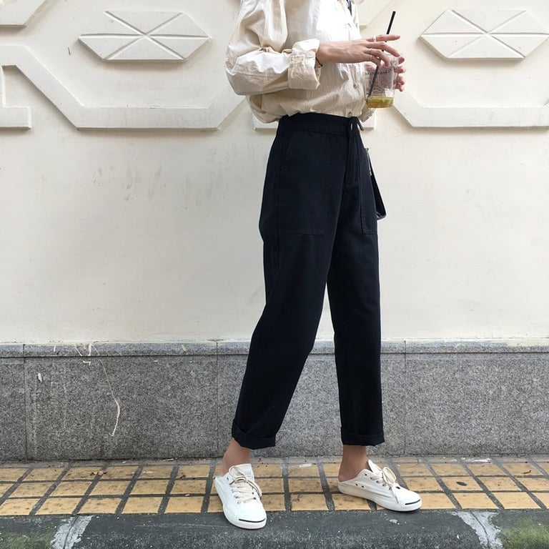 Women's loose black jeans
