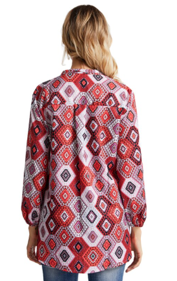 Women's Loose Boho Blouse with Beautiful Red Print