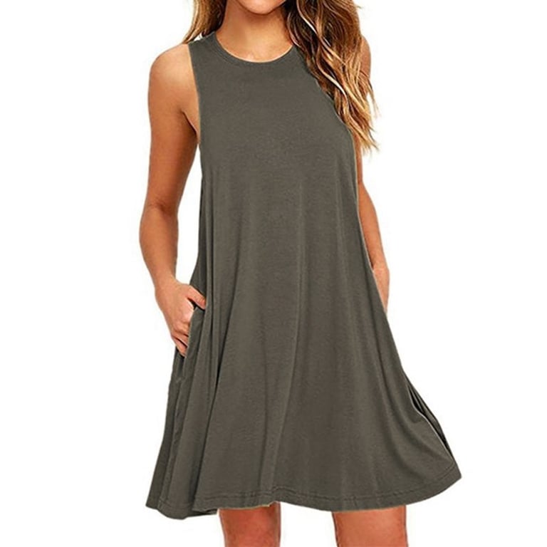 Women's sleeveless casual dress. Light and airy with wide straps and a round neckline. Loose, comfortable fit. Available in multiple colour options.