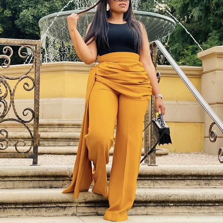 • With full-length legs and a comfortable high waist featuring an elegant bow tie.