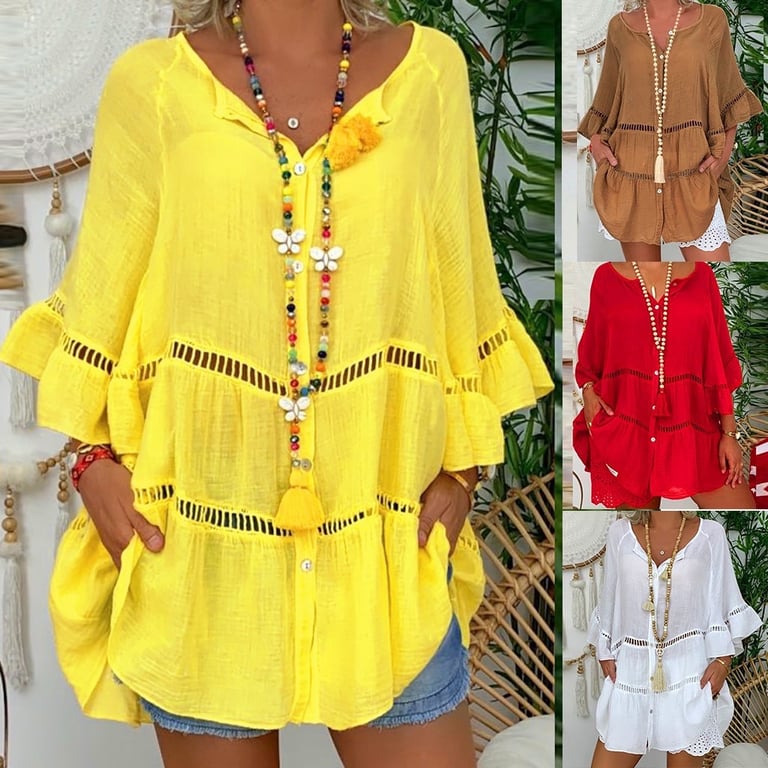 Women's Loose Plus Size Blouse with Cutouts