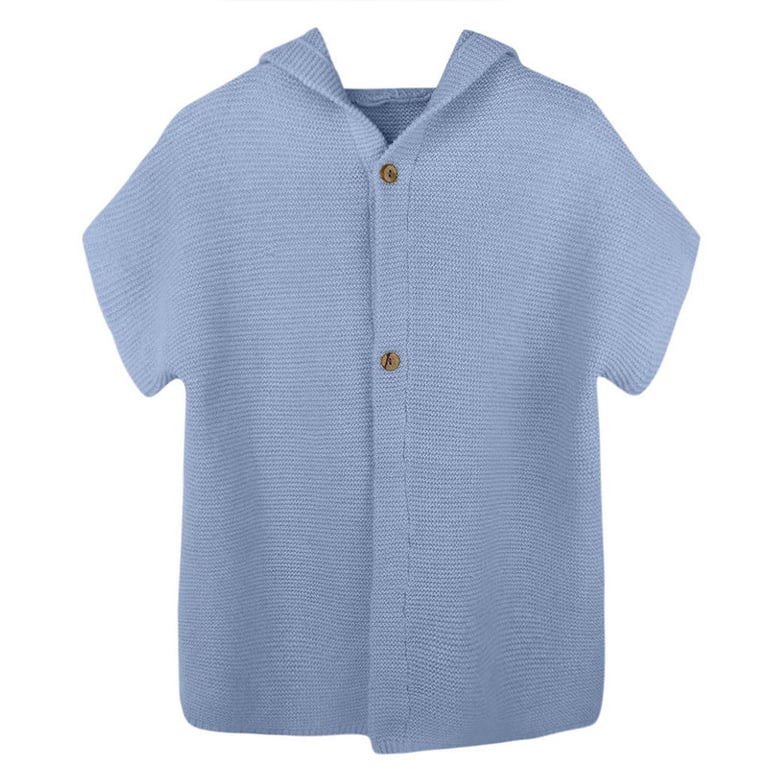 Stylish loose-fitting sweater that fastens with just two buttons. Thanks to the short sleeves, you can layer it with a long-sleeved top to create a feast for the eyes.