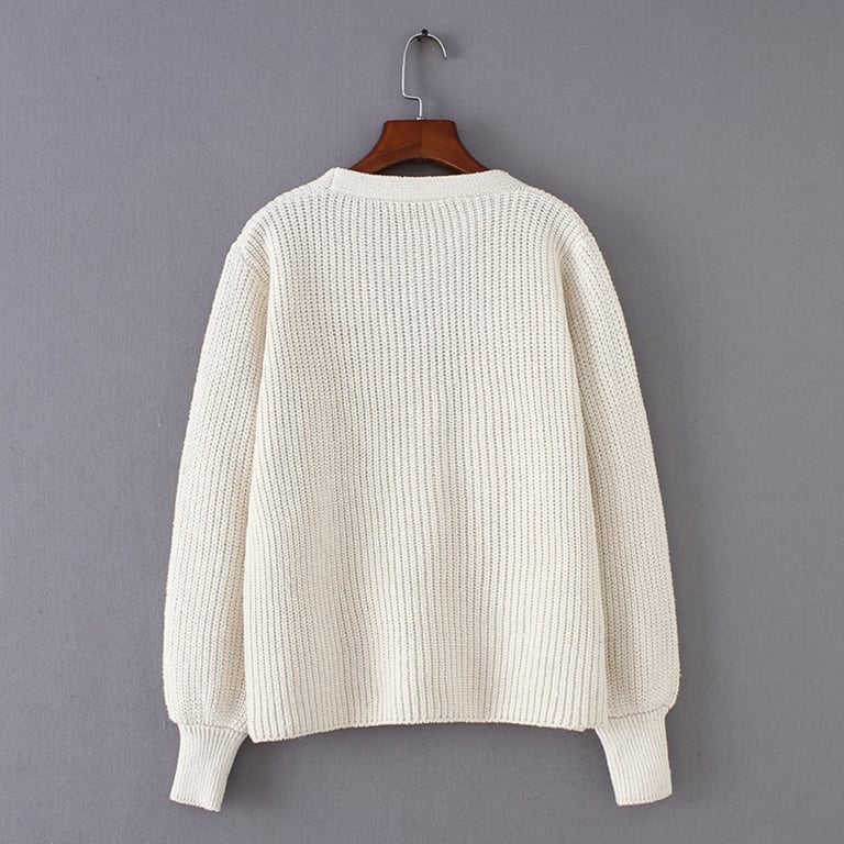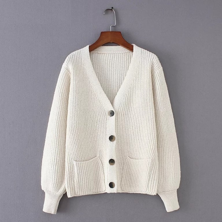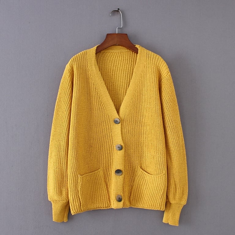 Women's Loose Sweater with Pockets and Buttons