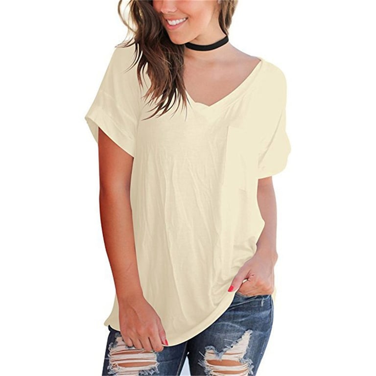 Women's short-sleeved t-shirt with a V-neck. The t-shirt has a loose, comfortable fit and a chest pocket. Available in multiple colour options.