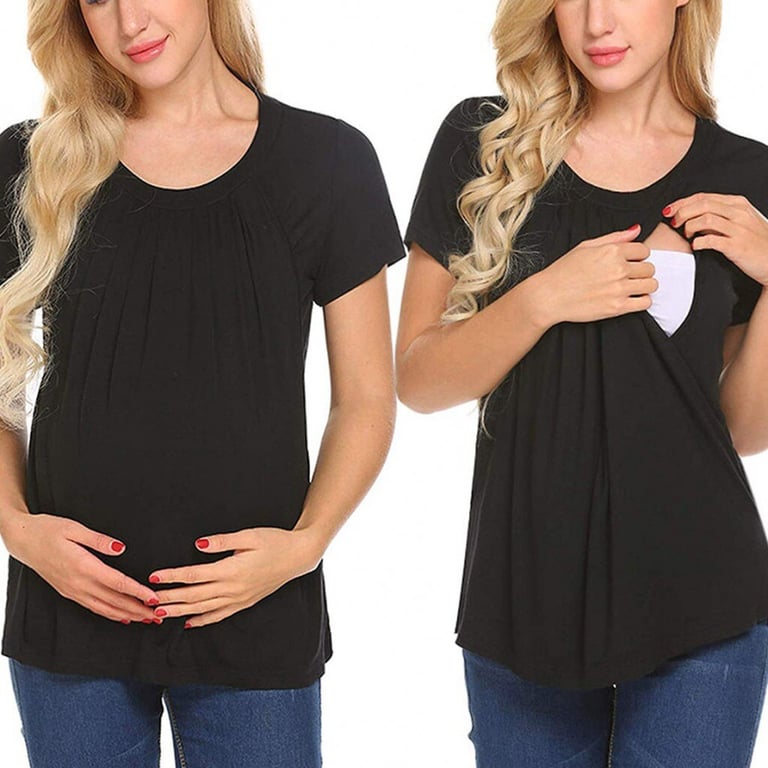 Women's maternity t-shirt with short sleeves. Loose, comfortable fit. Available in multiple colour options.