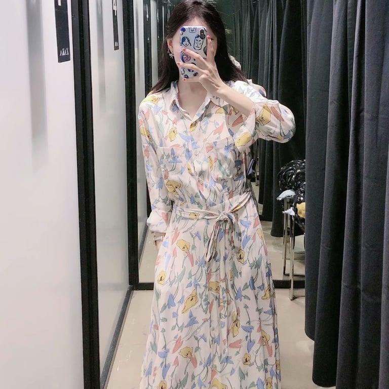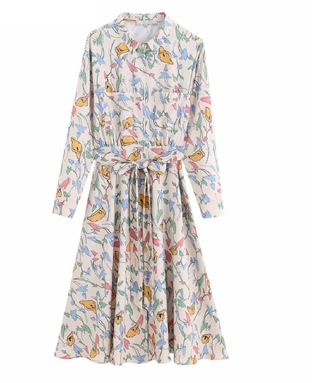 Elegant women's dress below the knee with a shirt cut.