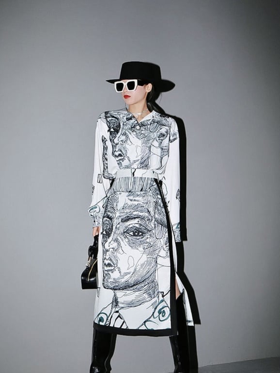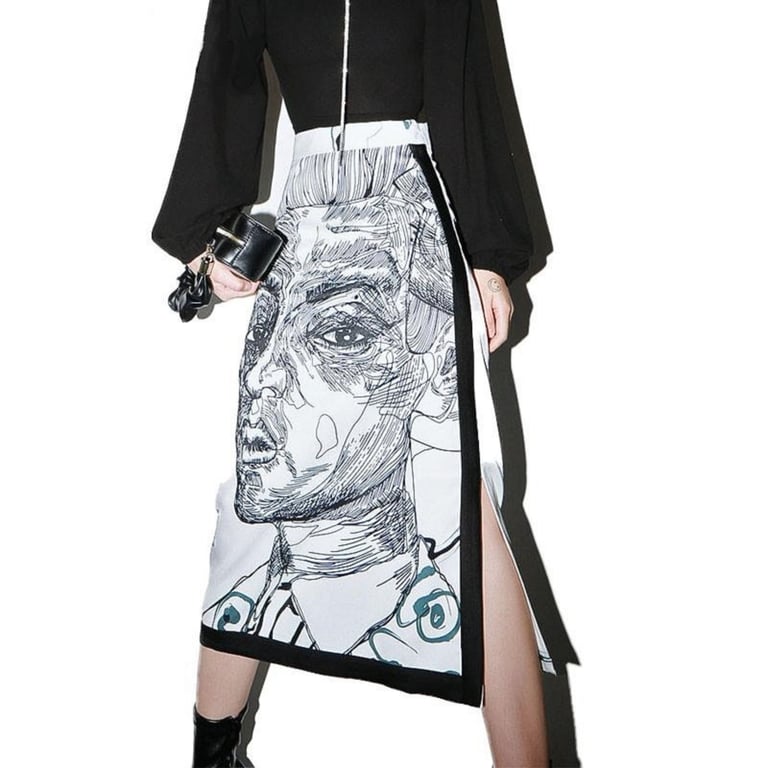 Women's midi skirt with face and slit