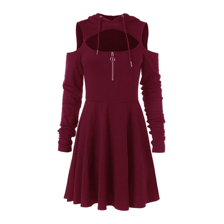 Women's mini dress with shoulder cut-outs. Long sleeves and an elegantly designed neckline.