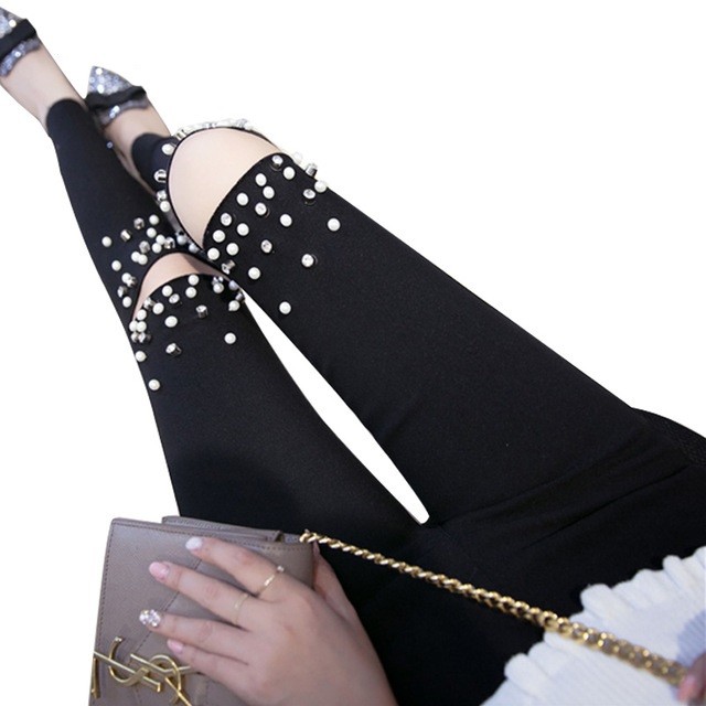 Beautiful stylish jeans with cuff diamonds that look like stars in the sky from a distance.