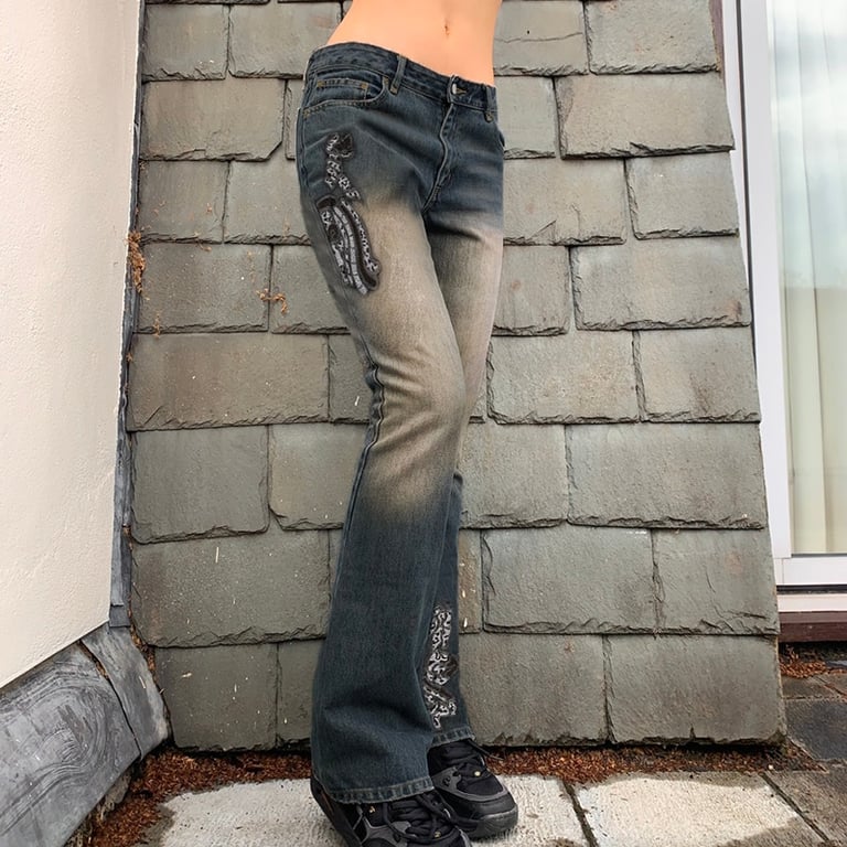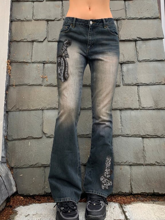 Women's modern jeans with vintage-style embroidery