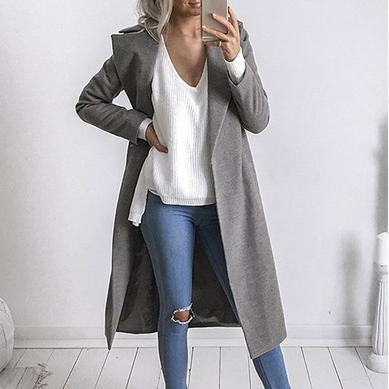 A lightweight long coat for women, suitable for spring or autumn evenings.