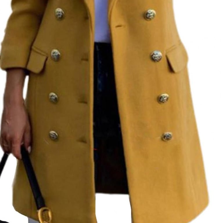 This elegant women's coat, featuring double-breasted detailing and a drawstring collar, will certainly be a suitable accessory for cooler weather.