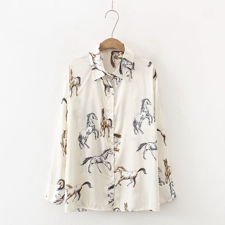 Women's modern spring blouse with horse patterns.