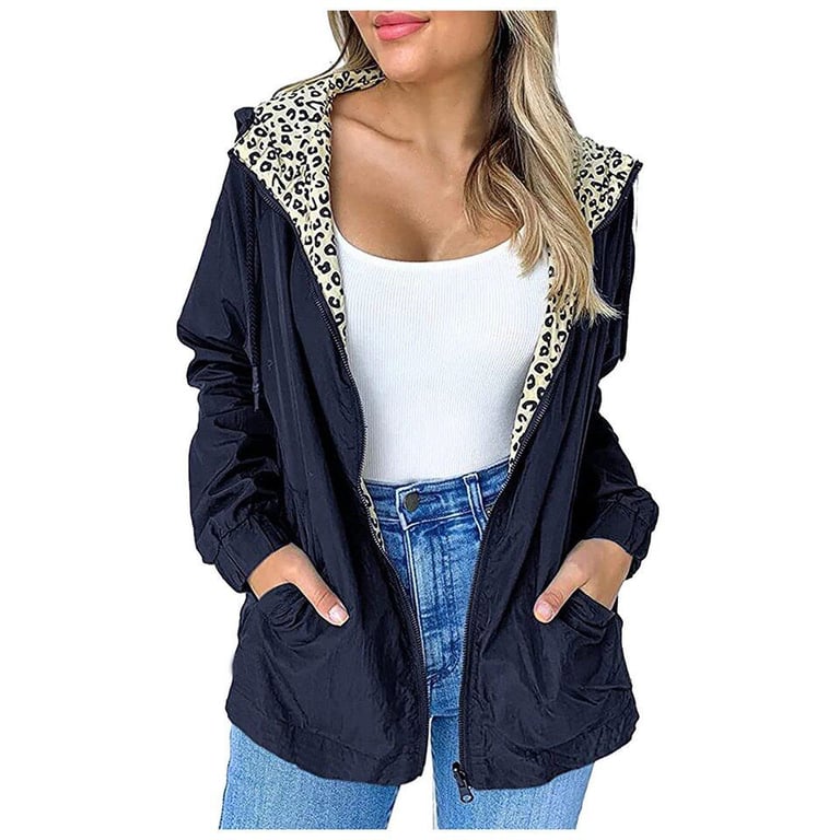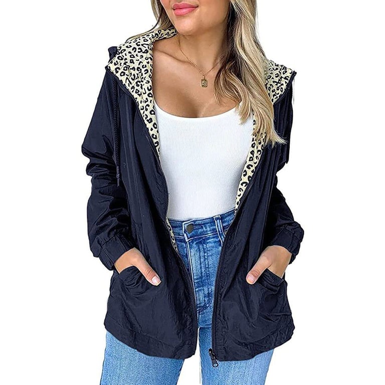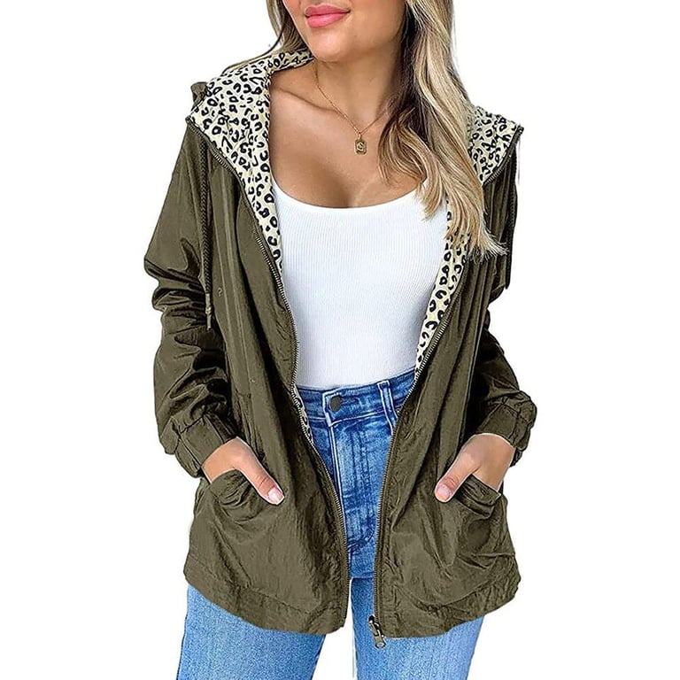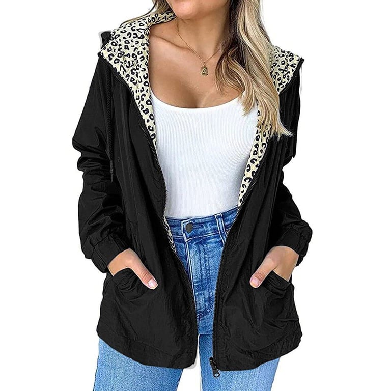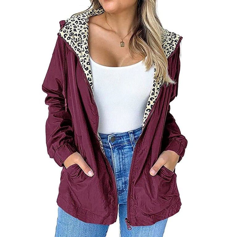 A simple women's windbreaker jacket with a hood.