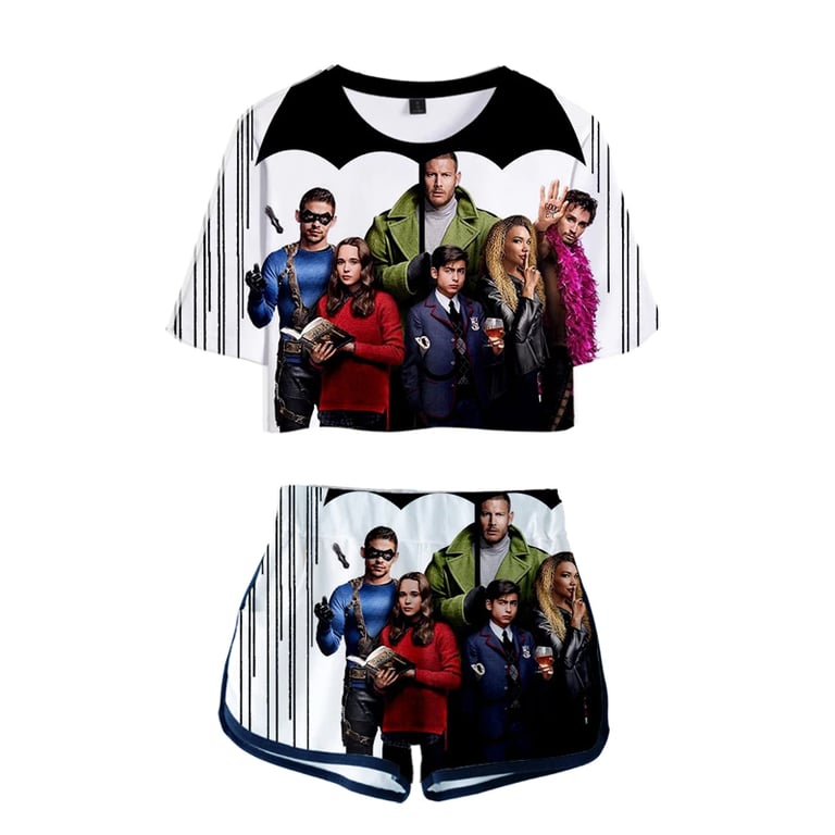 • Tags: top, women's top, shorts, women's shorts, set, women's set, summer set, Netflix, merch, Umbrella Academy