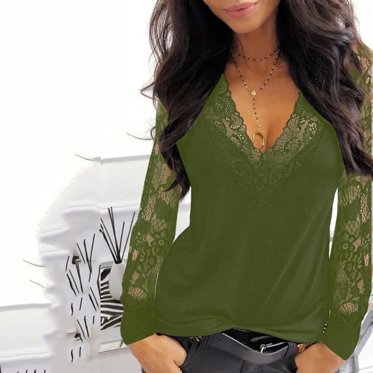 Women's Modern T-Shirt with Lace Sleeves and V-Neck