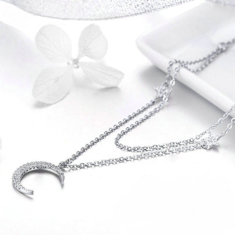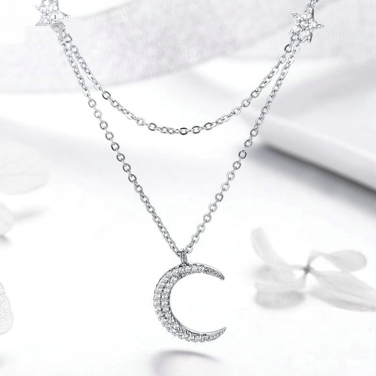 Women's necklace with a moon and stars