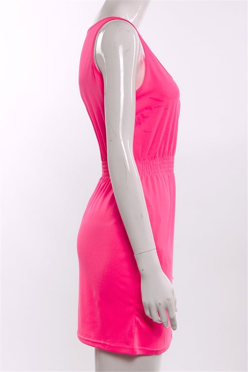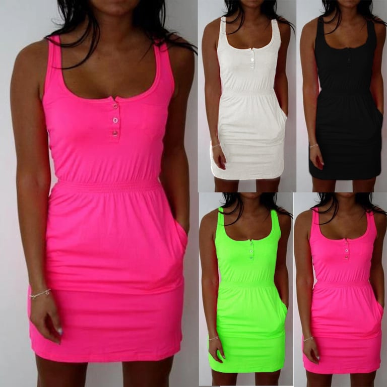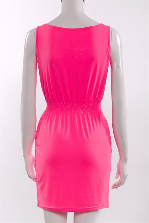 Women's Neon Dress with Elastic Waist and Buttons