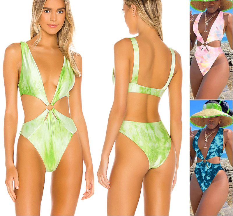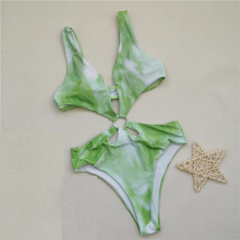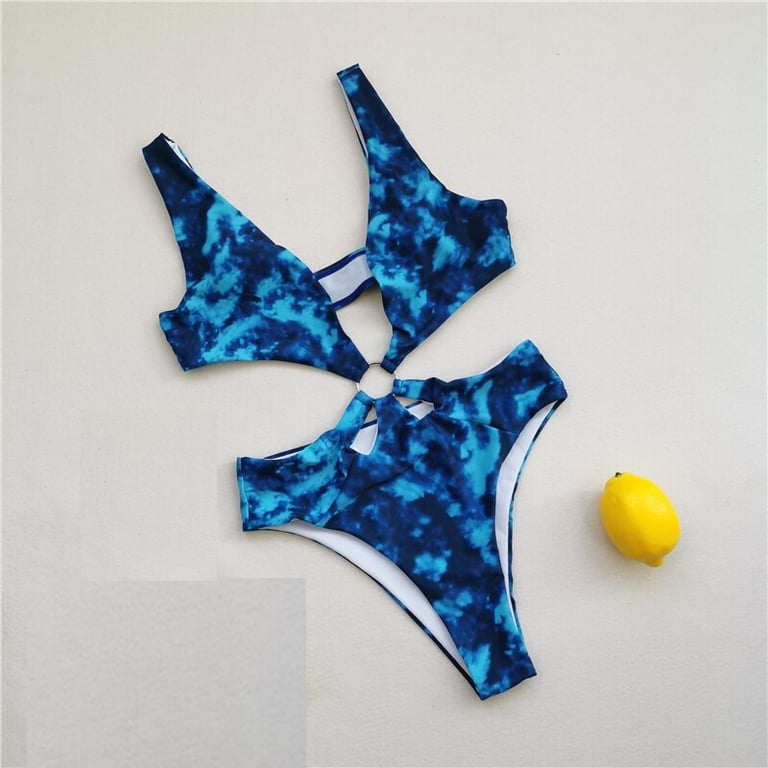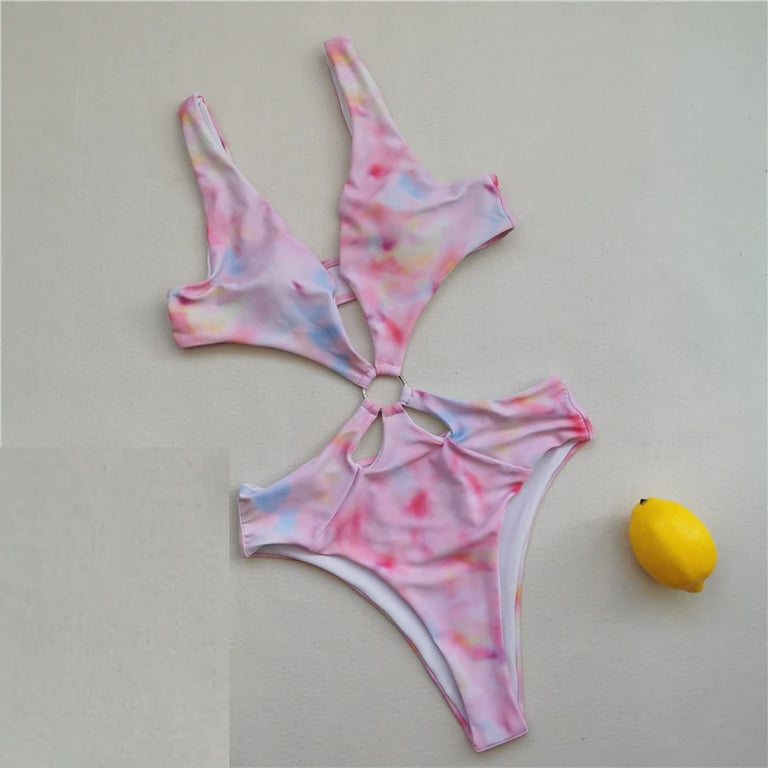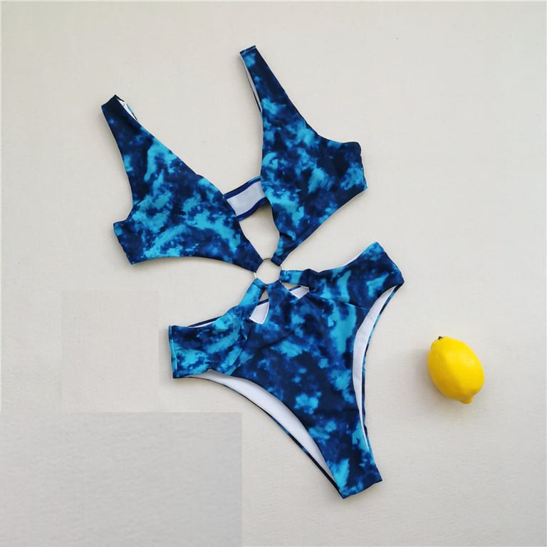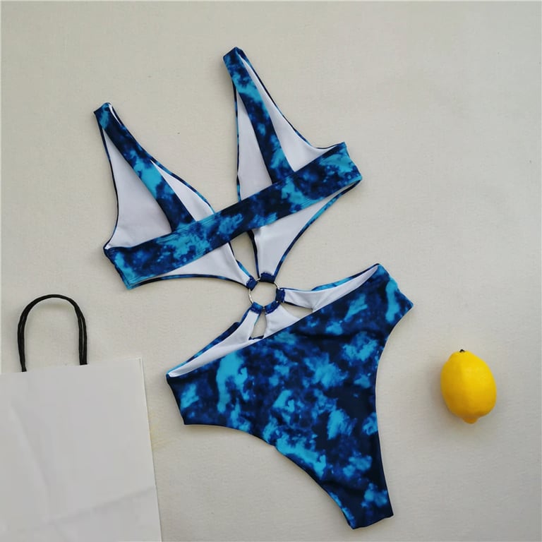 Women's One-Piece Swimsuit with Metal Ring at the Waist