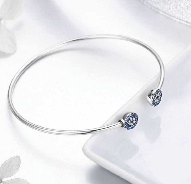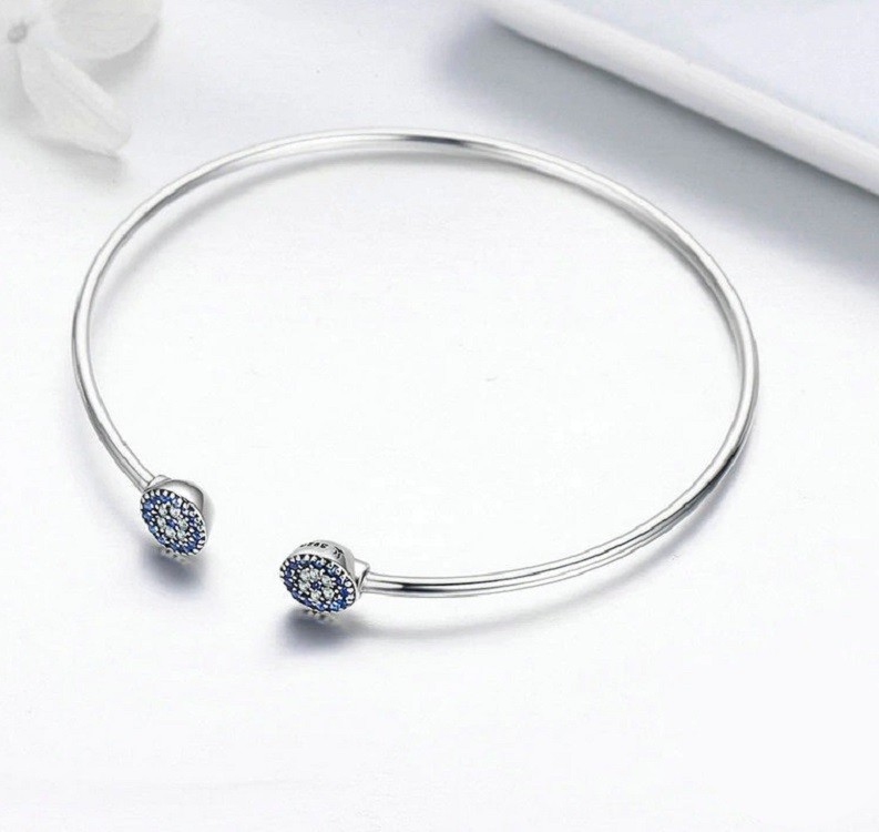 Women's open bracelet with blue stones