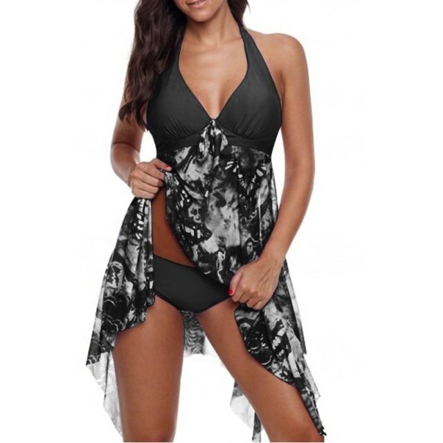 Women's swimsuit with an originally designed top. Made from polyester. Available in several nice colours.