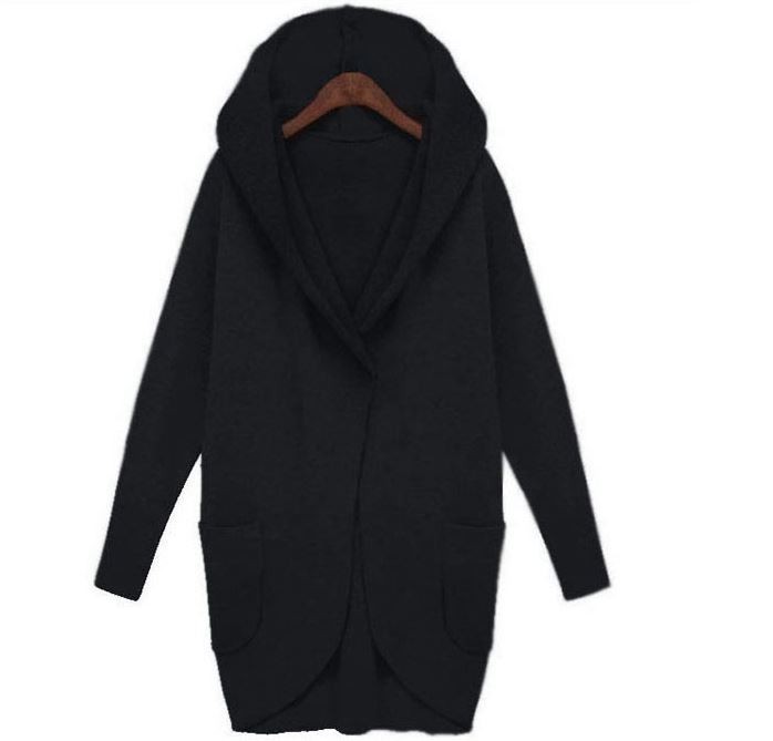Women's oversized coat with a hood - black