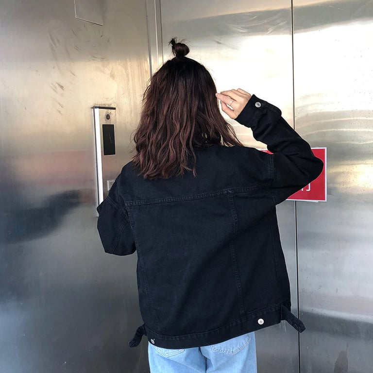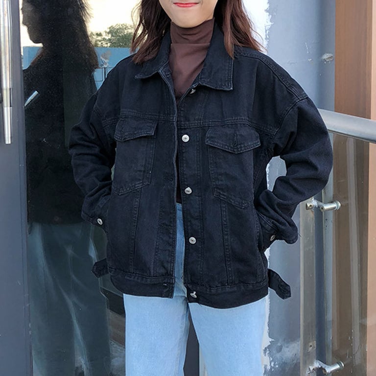 Women's denim jacket. Loose oversized fit with long sleeves. Button fastening. Chest pockets.