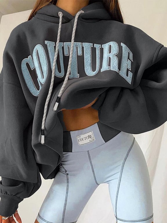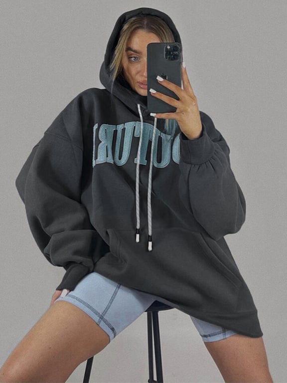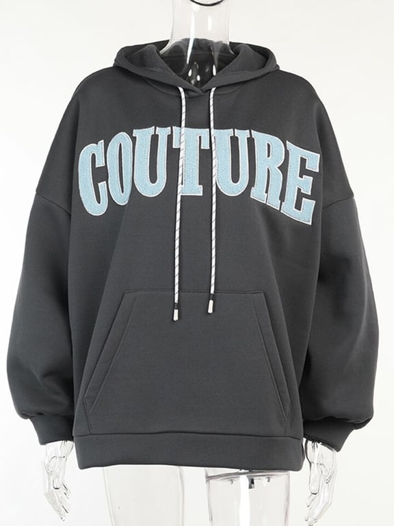 Women's Oversized Hoodie with Sewn-on Inscription – Couture