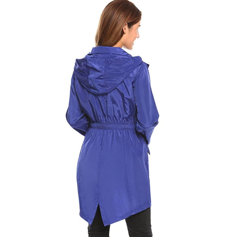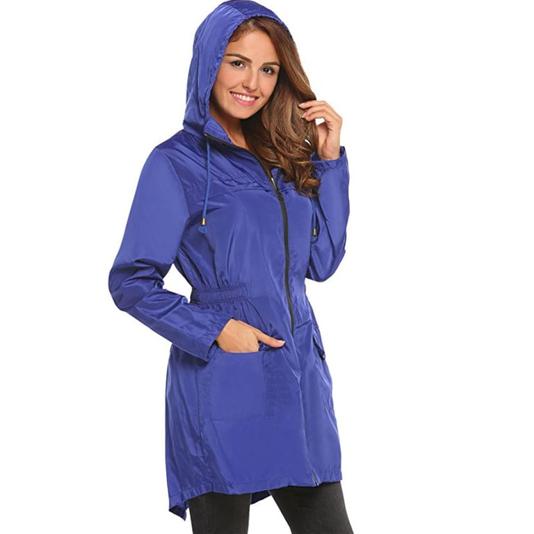 Women's waterproof parka with a hood and collar. Longer loose fit with an elastic waistband. Zip fastening. Side pockets. Available in multiple colour options.