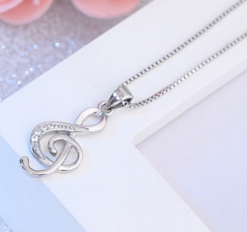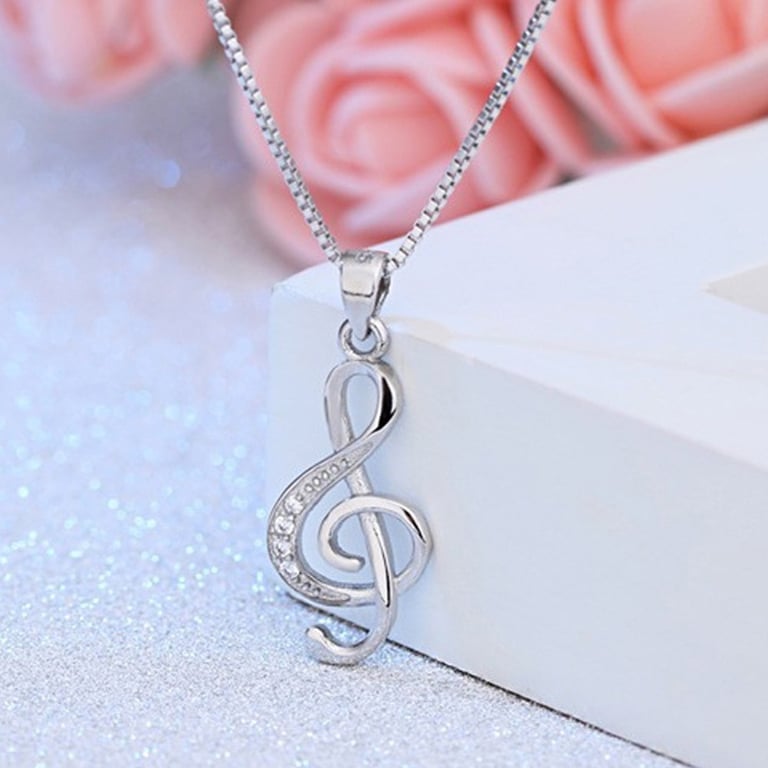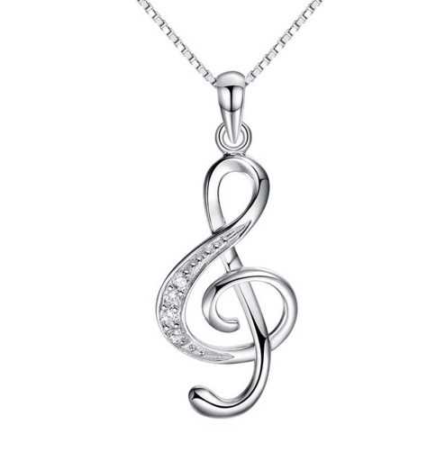 This ladies' fashion pendant in the shape of a treble clef with zircon stones will be a beautiful adornment for any woman's neck.