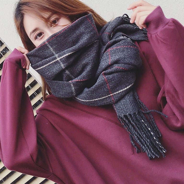 Women's warming scarf with fringes. Checked pattern. Dimensions 175 cm. Available in multiple colour options.