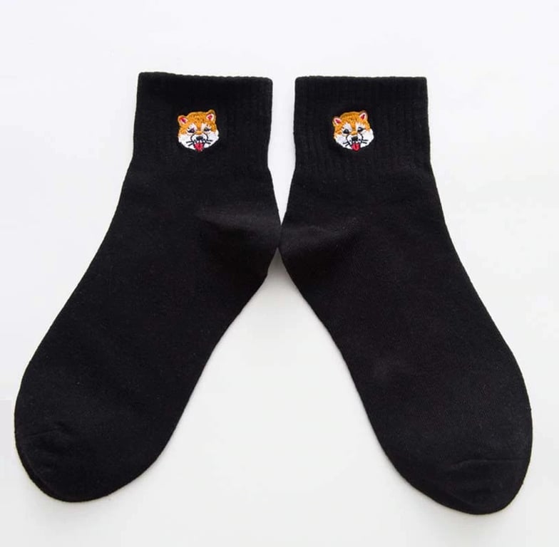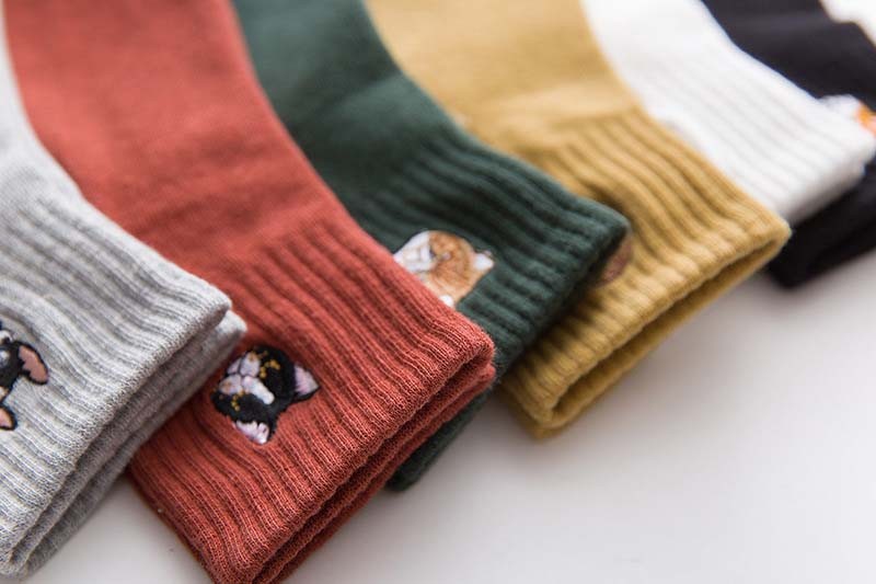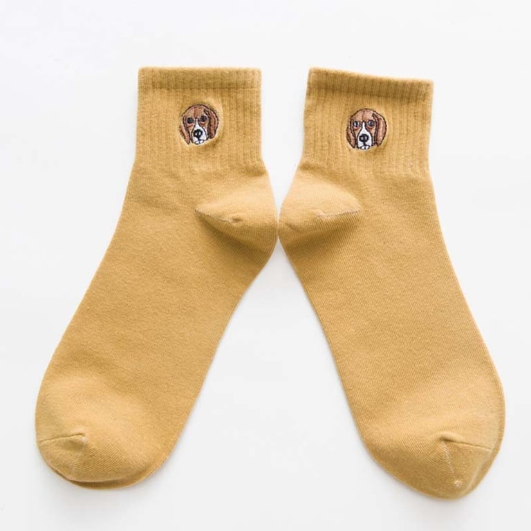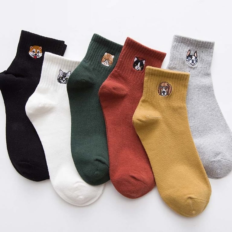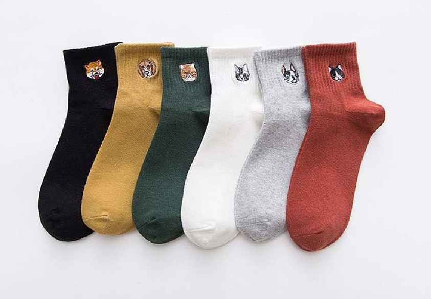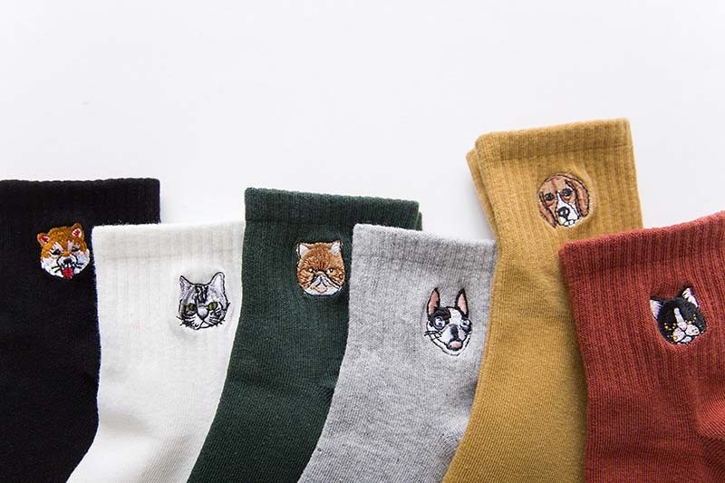 The socks feature embroidered mini pictures of dogs and cats at the top.