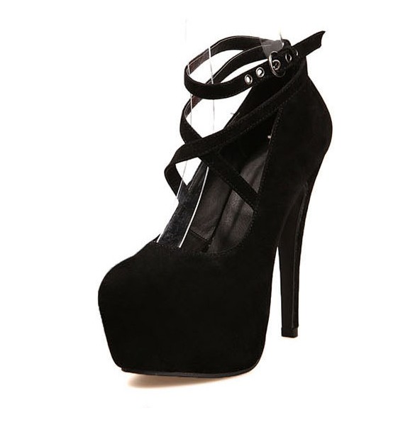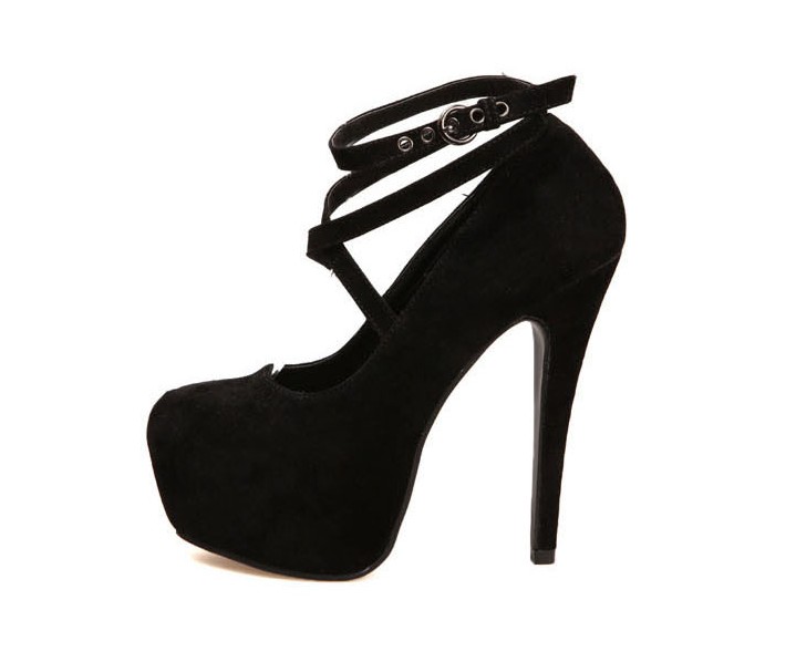 These elegant platform heels are very comfortable. The heels fasten with a buckle.