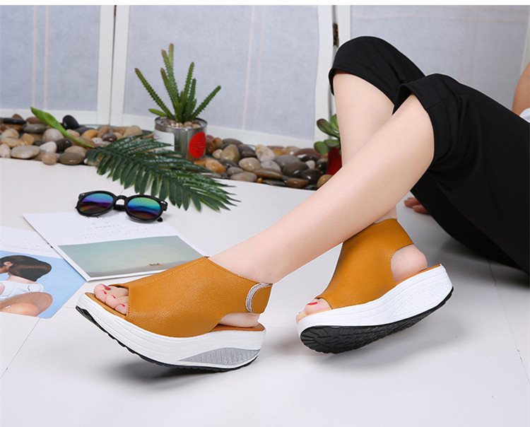 Women's open-toe wedge shoes in brown.
