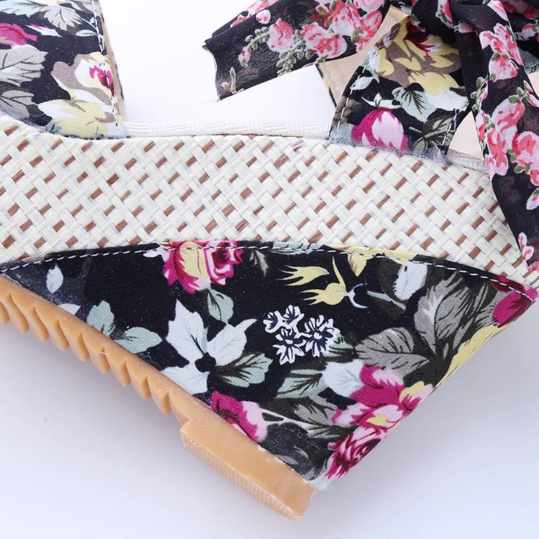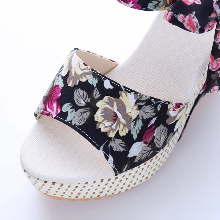 Every woman will love these platform sandals with a floral pattern.