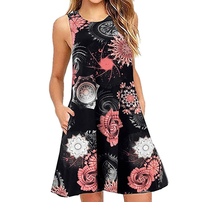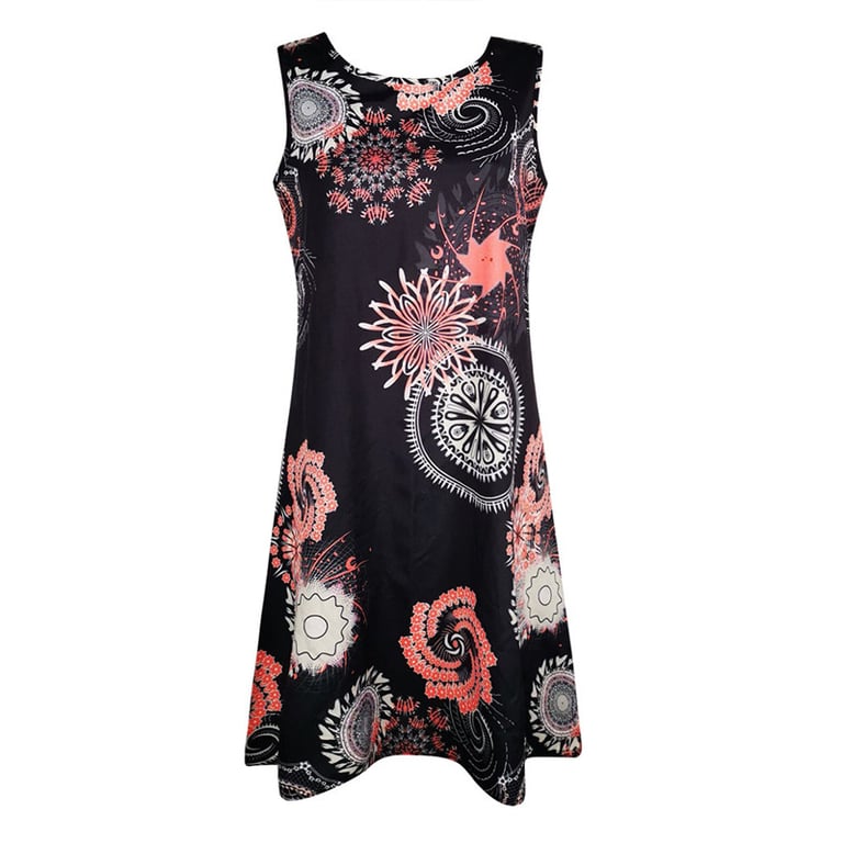 Stylish knee-length dress with an attractive print and classic cut.