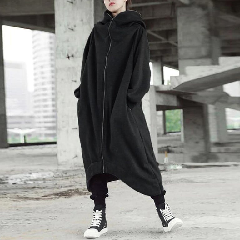 Women's plus size long hoodie Werdena – black