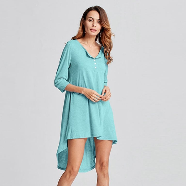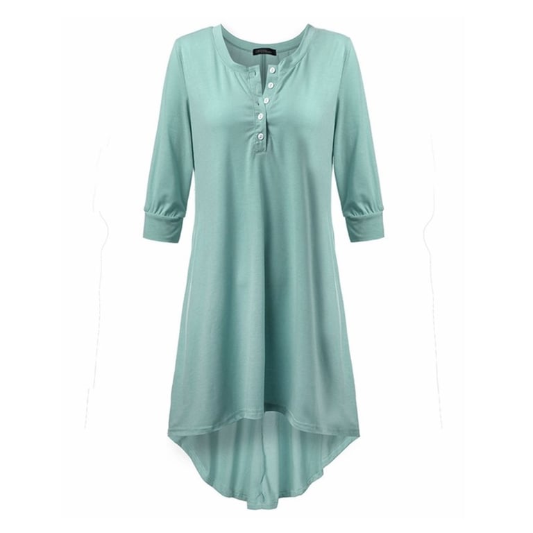 Long comfortable button-up top with an extended back. Free shipping.