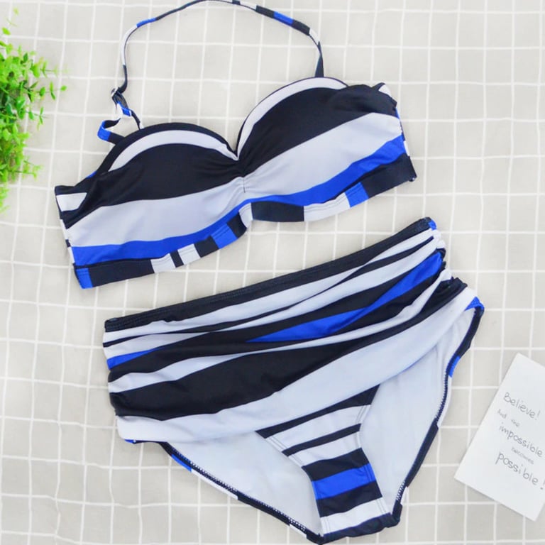Very comfortable two-piece swimsuit for relaxing moments by the water. With the higher bottom piece, you will gain confidence while not being constricted in a one-piece item.
