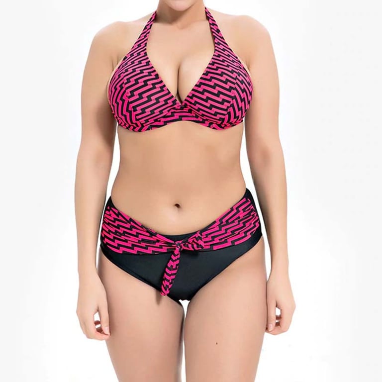 Women's plus size swimsuit with a pattern.
