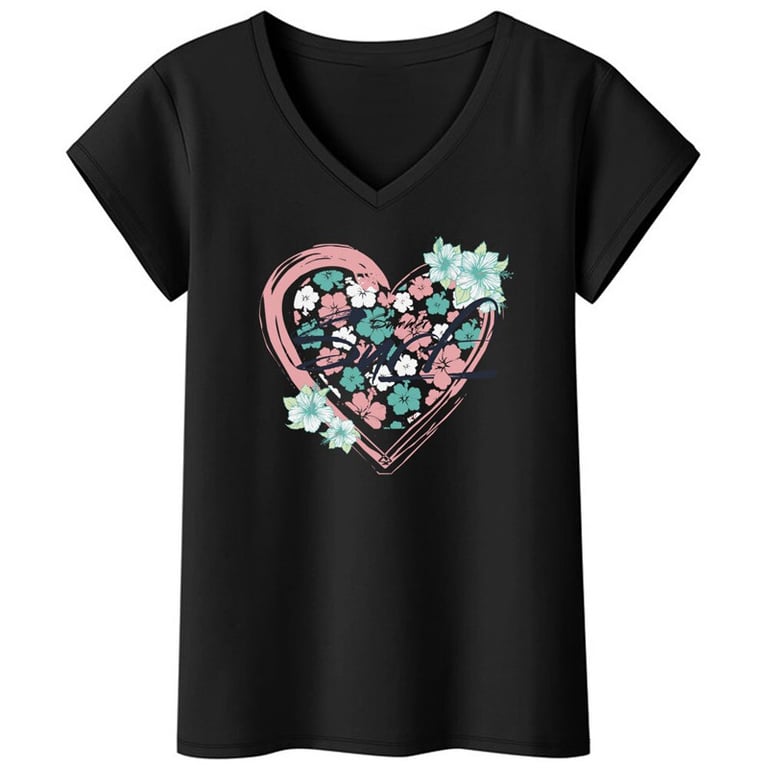Comfortable, slightly stretchy t-shirt with an attractive print and V-neck. Shop smartly, for a great price.
