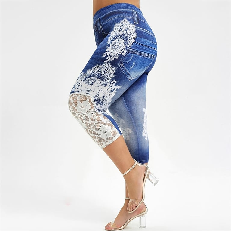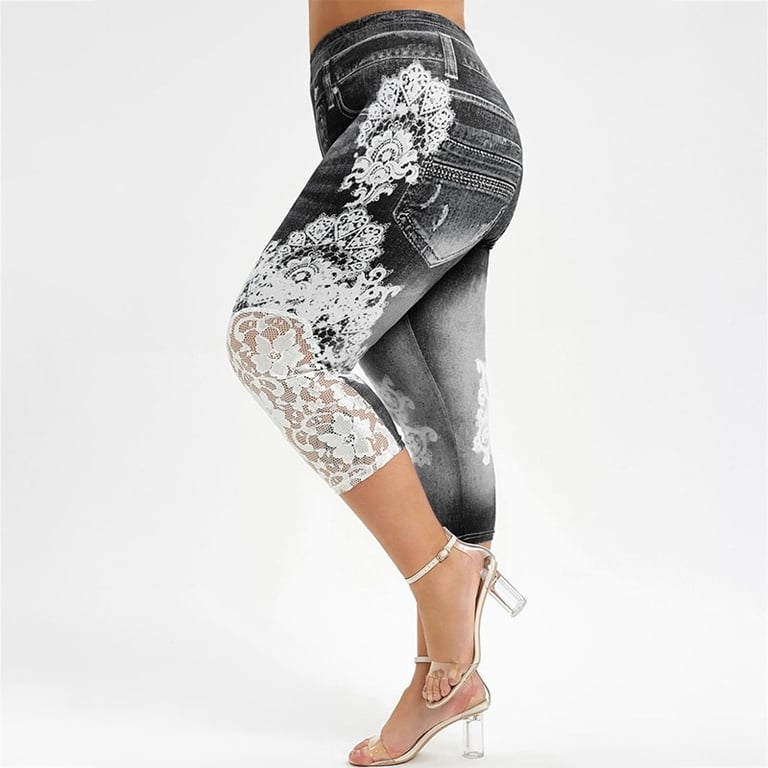 Women's Plus Size Trousers with Lace Hem on the Legs