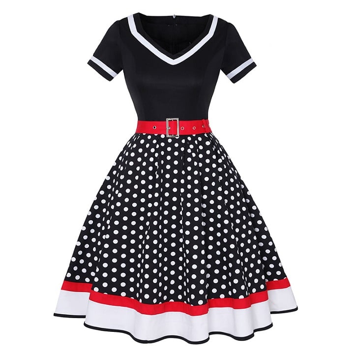 Beautiful dress with a wide polka dot skirt in the style of the 50s and 60s.