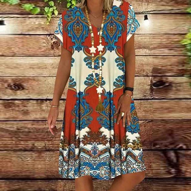 Women's dress with print in multiple colours.