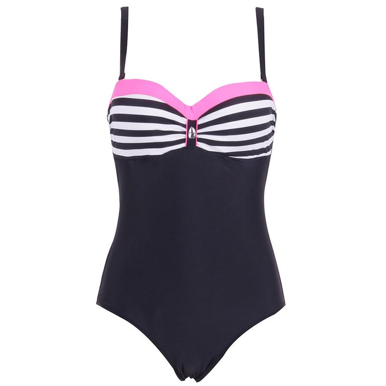 Women's one-piece swimsuit with a push-up effect. The swimsuit features padded cups and narrow adjustable straps. Slightly cut out. Available in several colour options.
