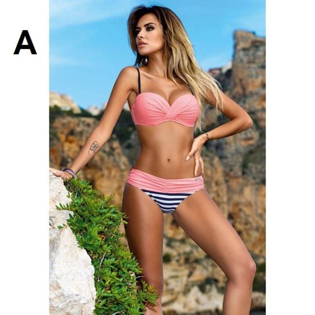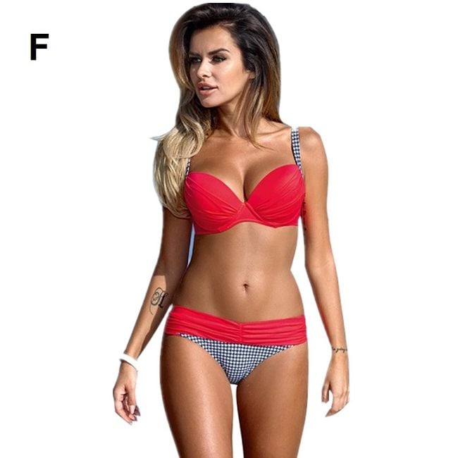 Women's swimwear with a push-up effect will create quite a stir by the water! Push-up swimsuits are currently a very intense trend, with the top helping to perfectly shape the bust. These swimsuits are also very comfortable and made from quick-drying material. There are many interesting cuts and colours available, each model is marked with a letter in the corner of the photo. The size chart is provided below the product features.