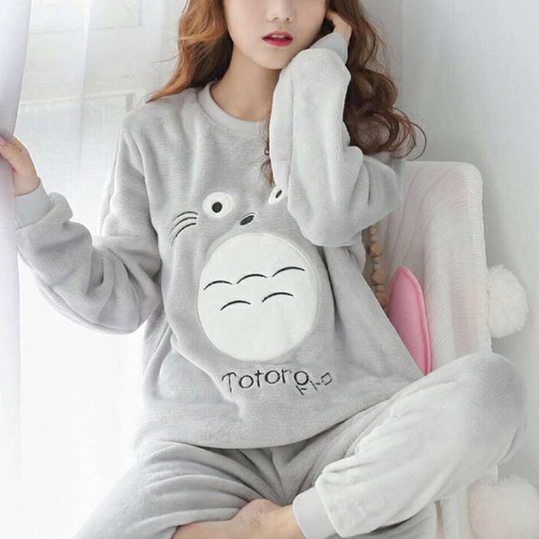 Women's warm fluffy pyjamas. Top with long sleeves. Trousers with long legs and an elasticated waistband.