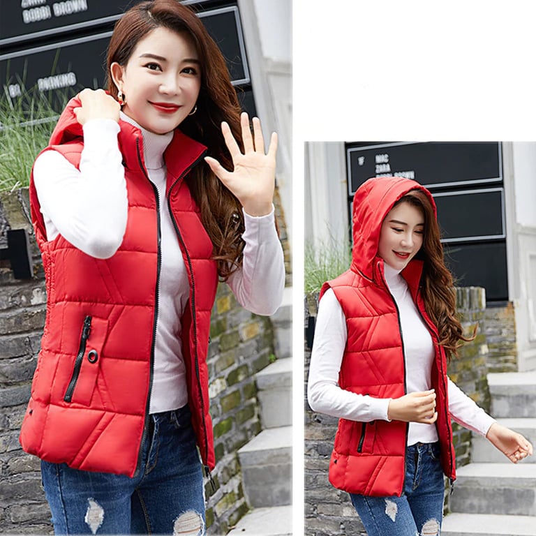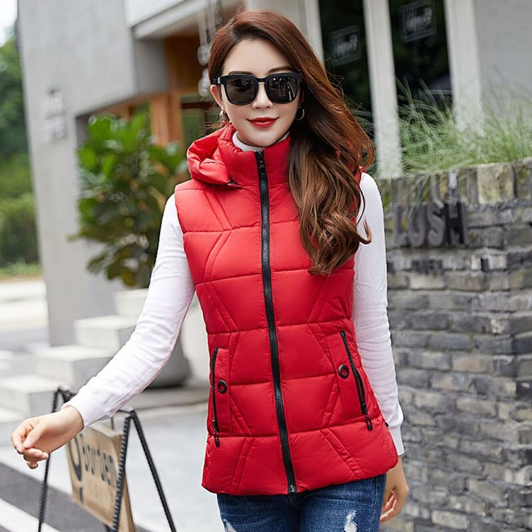 Women's vest with a practical hood and stylish quilted pattern.