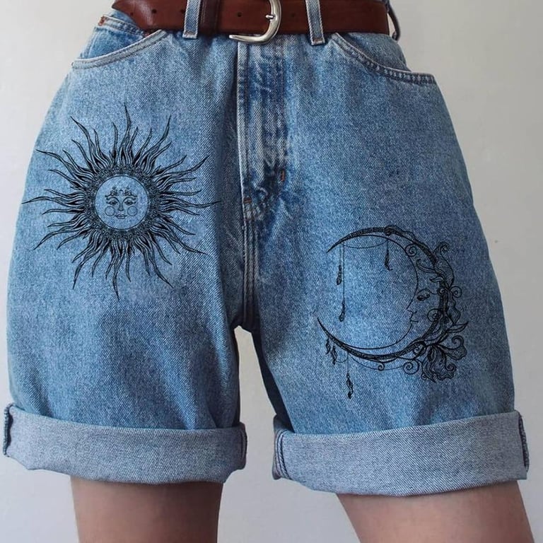 Quality women's retro shorts with a sun and moon print. Sold without a belt. Available in plus sizes as well.