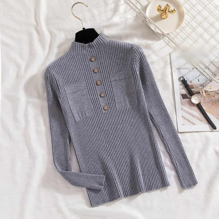 Women's Roll Neck with Buttons and Pockets